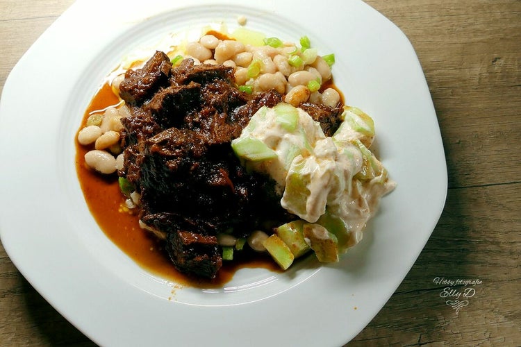 Laat het even doorkoken en zet de pan voor 2 en een half uur in de oven.