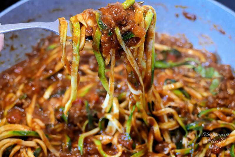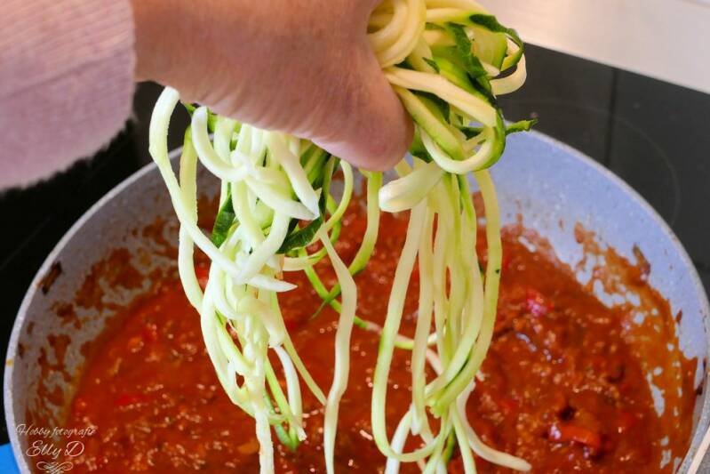 Ik vind dit altijd al lekker met pasta , maar met de courgette is het ook een feestje en je krijgt heel veel groente binnen ,ik tel 1 courgette p.p.