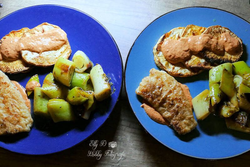 Daarna lekker eten, wij aten het met knolselderijsteak met parikasaus en kabeljauwfilet.