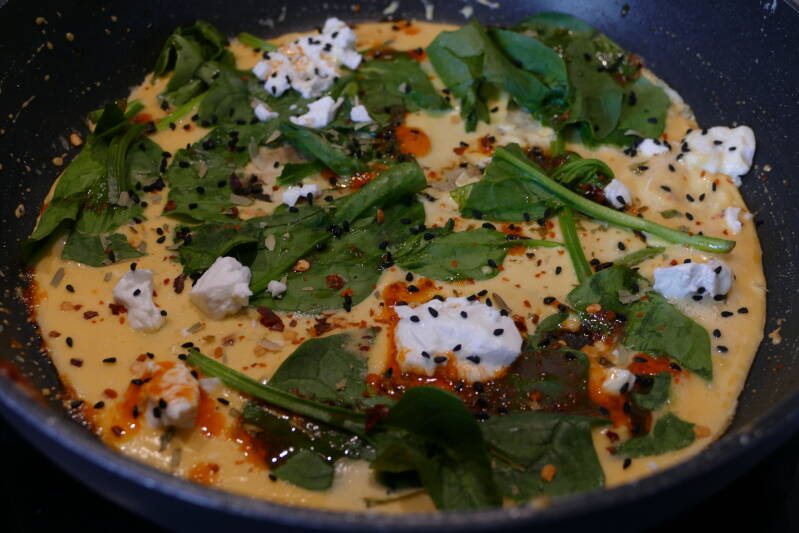 en de nigellezaad erover strooien en eventueel chilivlokken.